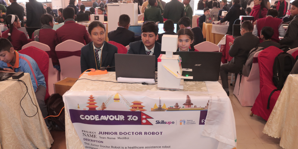 Codeavour 7.0, a national-level competition aimed at promoting Artificial Intelligence (AI), robotics, and coding skills among students, was successfully held on Monday, Magh 26, at Anupam Foodland in Battisputali, Kathmandu. The event was organized by SkillsUp in collaboration with Nima Education Foundation and Steampedia.